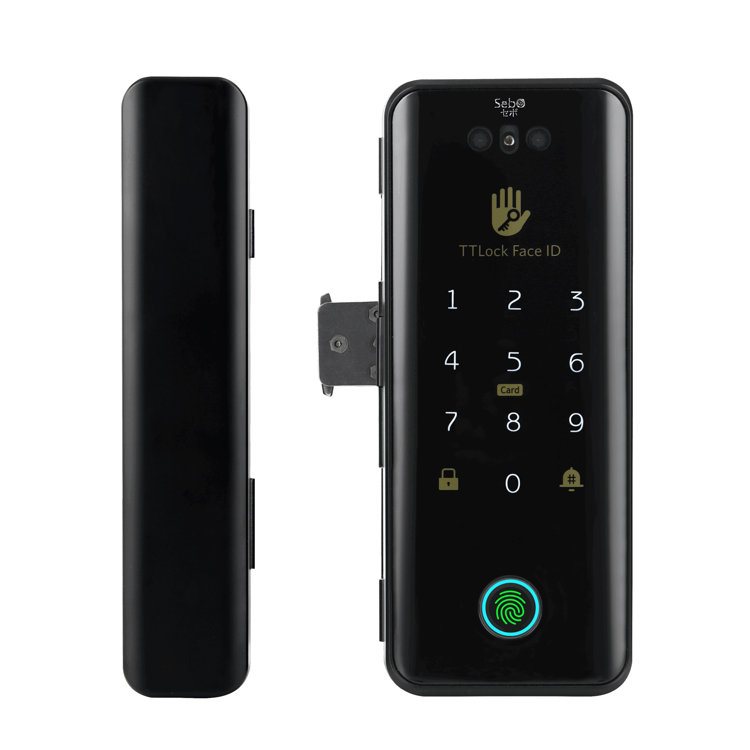 สมาร์ทดิจิตอลล็อคที่สวยที่สุด ระบบสแกนหน้า ด้านนอกโดนฝนได้ สำหรับประตูทั่วไป สวิงหรือเลื่อน แบบเดี่ยวและบานคู่ สั่งเปิดด้วยใบหน้า ลายนิ้ว บัตร รหัส กุญแจสำรอง และแอพTTLock มาพร้อมแบตเตอรี่ลิเธียมชาร์จซ้ำได้